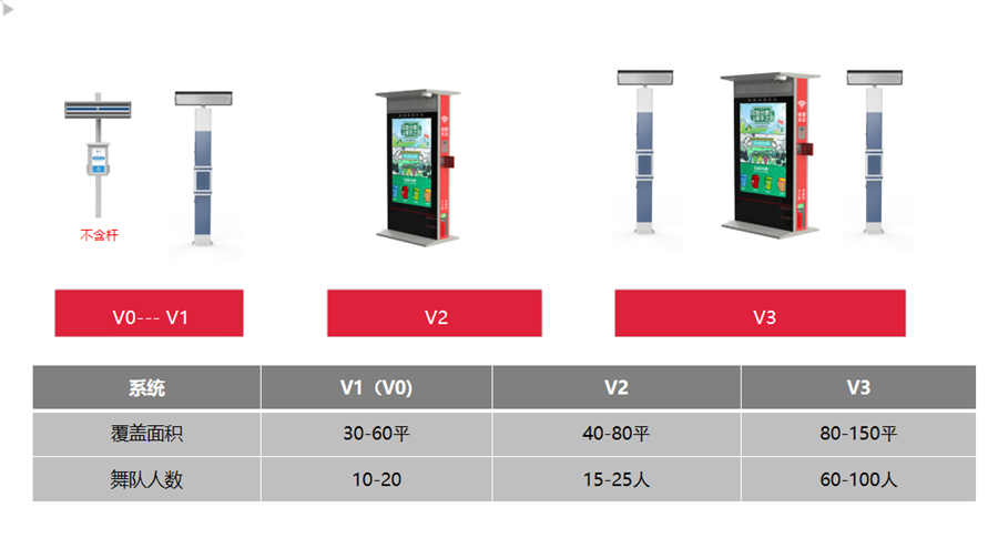 清聽(tīng)聲學(xué)智慧廣場(chǎng)舞系統(tǒng)一共有4個(gè)型號(hào):V0、V1、V2、V3,其中V0、V1是比較基礎(chǔ)的型號(hào),不帶大屏幕,這2個(gè)型號(hào)的只能廣場(chǎng)舞系統(tǒng)只能通過(guò)插優(yōu)盤來(lái)播放歌曲,優(yōu)盤里面的歌曲曲目都可以自由選擇,數(shù)量多少也是自由決定,不是規(guī)定的曲目和數(shù)量,不是只能播放幾首歌曲。V2、V3是帶大屏幕的智慧廣場(chǎng)舞系統(tǒng),這2個(gè)型號(hào)設(shè)備可以通過(guò)外接優(yōu)盤來(lái)播放歌曲也可以通過(guò)手機(jī)小程序來(lái)播放自己想聽(tīng)的音樂(lè),V2、V3因?yàn)閹Я舜笃聊豢梢月?lián)網(wǎng),所以功能相對(duì)比V0、V1來(lái)說(shuō)也是更多,因此播放歌曲的途徑也更多。