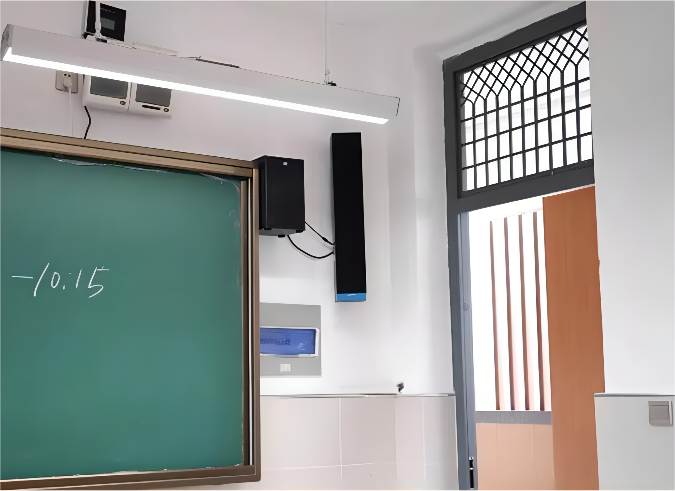 另外,教室音響的教學(xué)級(jí)專(zhuān)業(yè)擴(kuò)聲揚(yáng)聲器部分采用的是一體化設(shè)計(jì),黑色木紋邊框,集多功能于一體,可實(shí)現(xiàn)聲音精準(zhǔn)區(qū)域覆蓋。可安裝在黑板的一側(cè),安裝簡(jiǎn)單,使用便捷,配套的無(wú)線(xiàn)麥克風(fēng)即連即用。