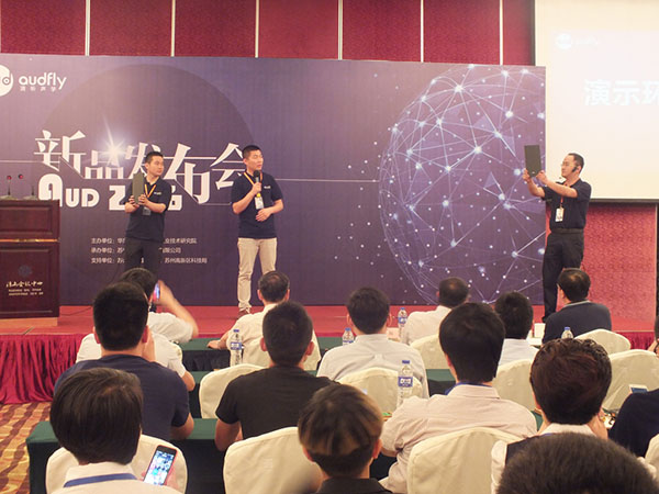 在發(fā)布會(huì)現(xiàn)場(chǎng),清聽(tīng)聲學(xué)科技有限公司創(chuàng)始人栗振特別帶上聚音寶,給大家做了產(chǎn)品演示,讓大家可以更加深入清晰的了解聚音寶這款產(chǎn)品。